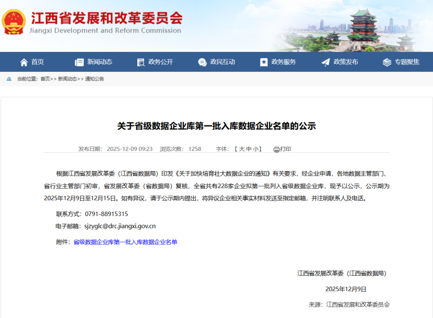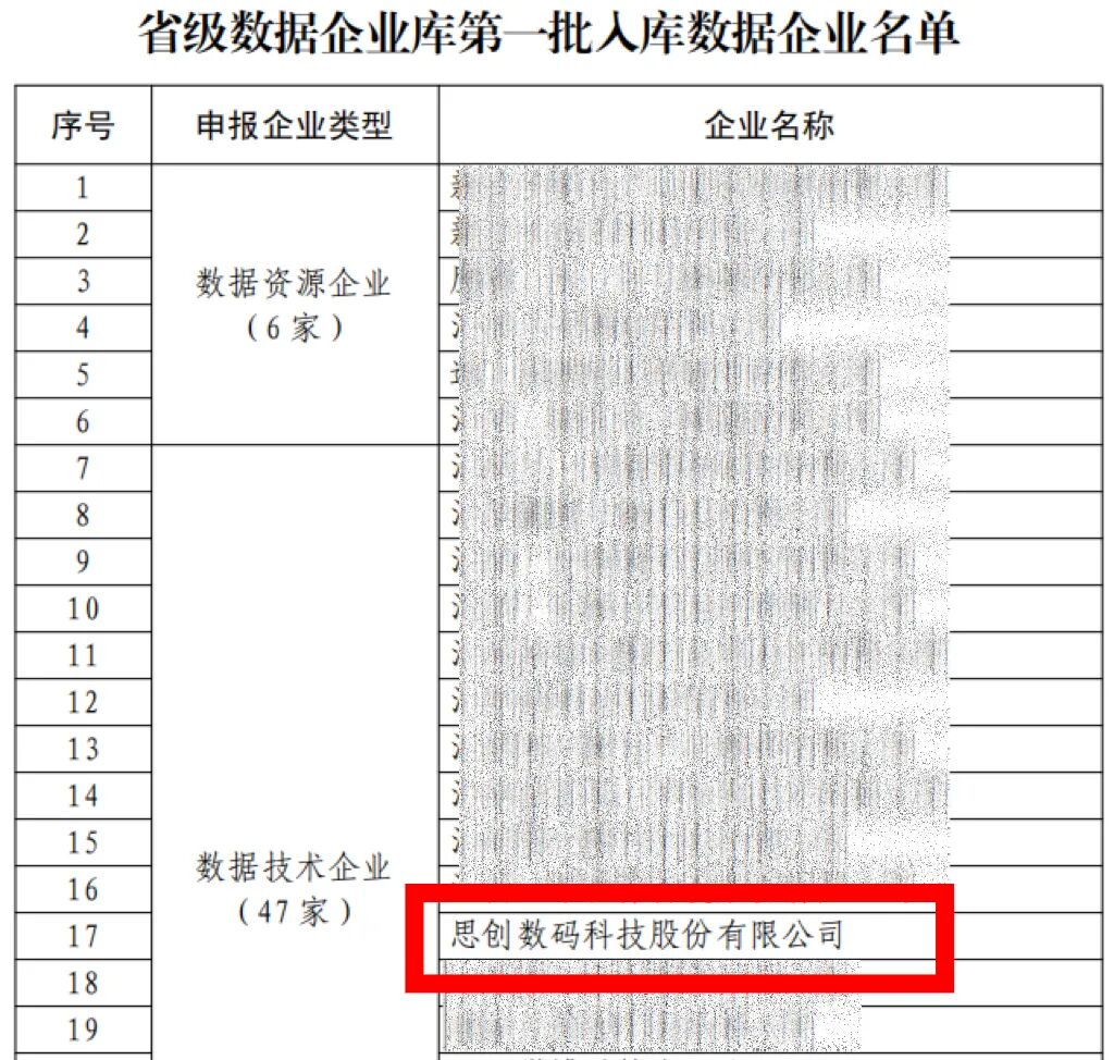 近日,江西省发展和改革委员会(江西省数据局)公示了首批省级数据企业库名单,思创成功入选“数据技术企业”。